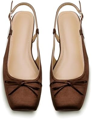 Women’s Ballet Flats Slingbacks Square Toe Bow Knit Dressy Flat Shoes with Ankle Buckles Satin